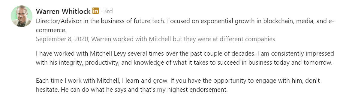 Mitchell Levy has authored and co-authored over 60 books. You can see these books on Pintererst. He’s written on topics surrounding thought leadership and credibility in many vertical and functional areas.