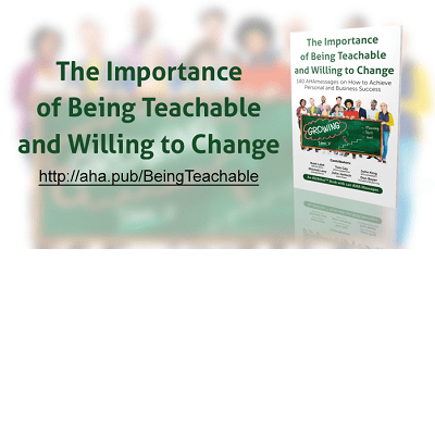 This week’s five AHAs are from the AHAbook™ The Importance of Being Teachable and Willing to Change. Please share this URL “aha.pub/BeingTeachable” in your social media status update to let your friends know about it.